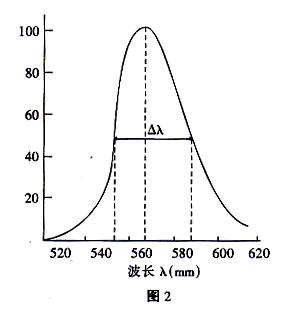 (3)光谱半宽度Δλ:它表示发光管的光谱纯度.是指图3中1/2峰值光强所对应两波长之间隔.