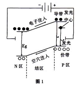 发光二极管是由Ⅲ-Ⅳ族化合物,如GaAs(砷化镓)、GaP(磷化镓)、GaAsP(磷砷化镓)等半导体制成的,其核心是PN结。因此它具有一般P-N结的I-N特性,即正向导通,反向截止、击穿特性。此外,在一定条件下,它还具有发光特性。在正向电压下,电子由N区注入P区,空穴由P区注入N区。进入对方区域的少数载流子(少子)一部分与多数载流子(多子)复合而发光,如图1所示。