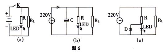 (2)图6(a)、(b)、(c)分别为直流电源、整流电源及交流电源指示电路。